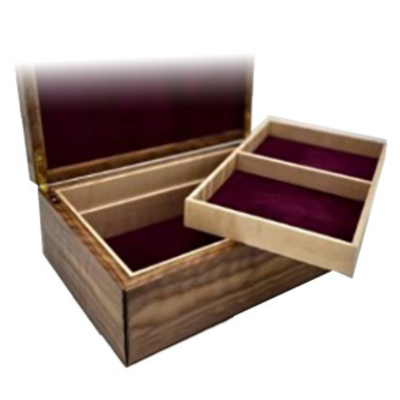Inside, the removable Maple tray offers flexible storage, while both the tray base and the bottom of the box are lined with deep red velvet. This luxurious lining not only protects delicate items but also enhances the overall presentation.