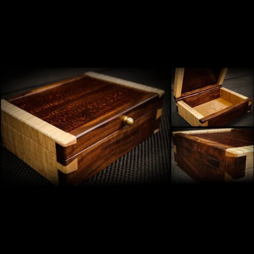 This box is constructed from American Black Walnut and American Hard Maple, combining two premium timbers for both strength and visual contrast. The sides are crafted from American Hard Maple, while the top, bottom, front, and rear sections are all made from American Black Walnut, creating a balanced and refined look.