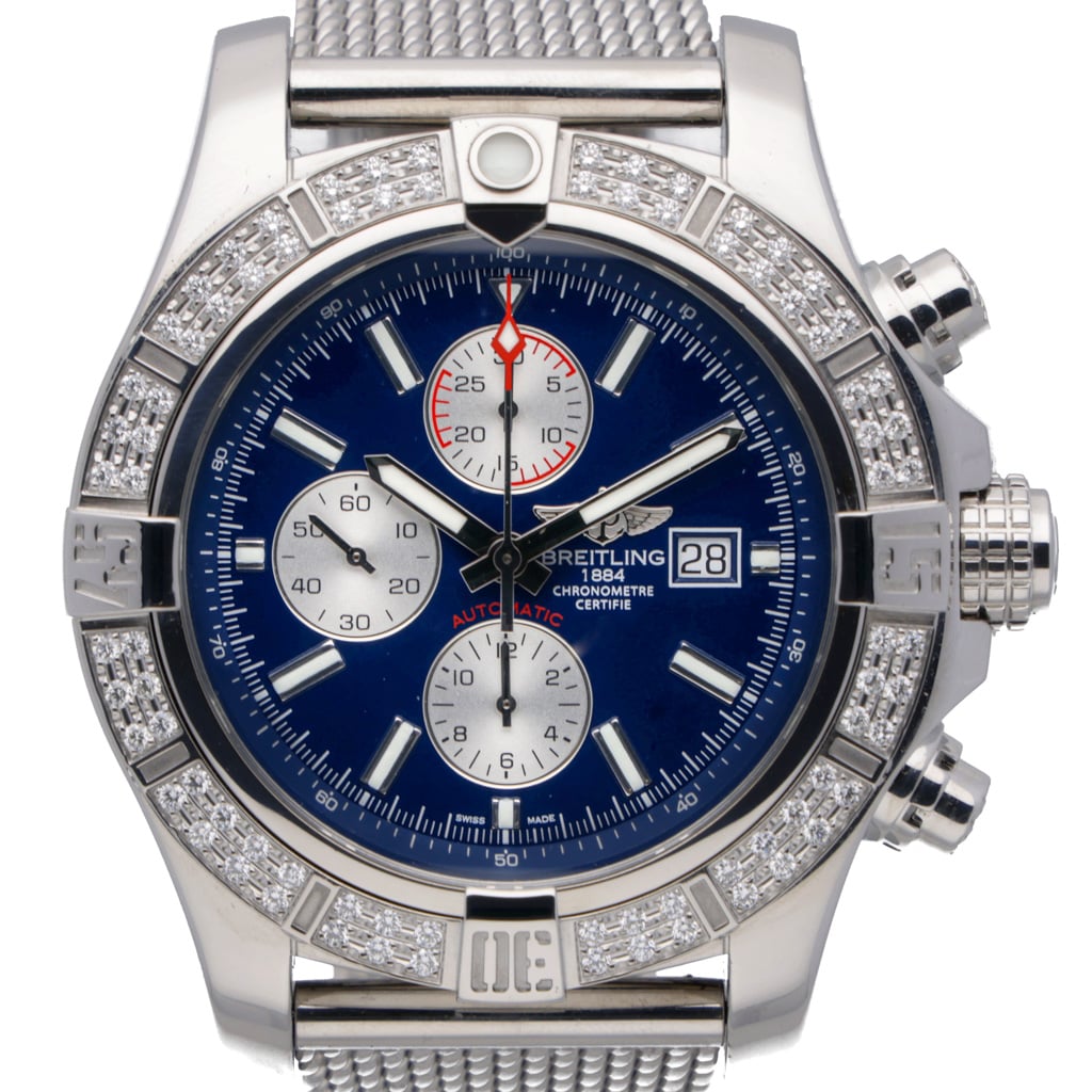 BQ Watches conducts a systematic evaluation process for each Breitling Super Avenger II which trained specialists execute. The examination process of each watch includes testing movement accuracy and evaluating chronograph performance and assessing dial integrity and checking case condition to establish both authentic status and operational reliability before sale.