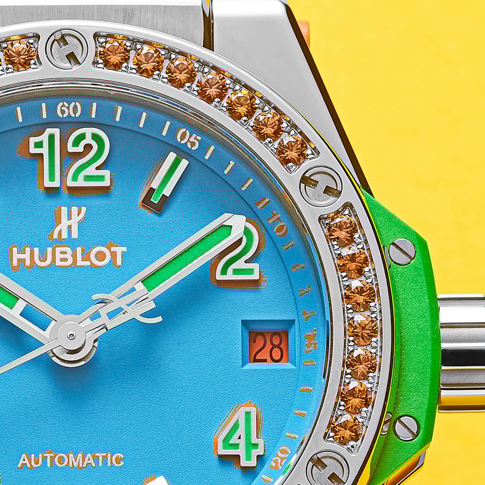 Variations within the Pop Art collection are expressed through distinctive colour themes, gemstone detailing, and differing strap combinations. Despite these playful differences, each watch retains the instantly recognisable Big Bang architecture, ensuring a consistent identity across the range while allowing for individual character and creative expression.