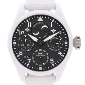 Our IWC Pilot range includes Big Pilot, Spitfire chronographs, big date variants, perpetual calendars, and time-only models crafted in steel, ceramic, or titanium. References feature bold Arabic numerals, oversized crowns, and cockpit-inspired layouts, curated for UK collectors who value heritage-driven functionality and mechanical integrity.