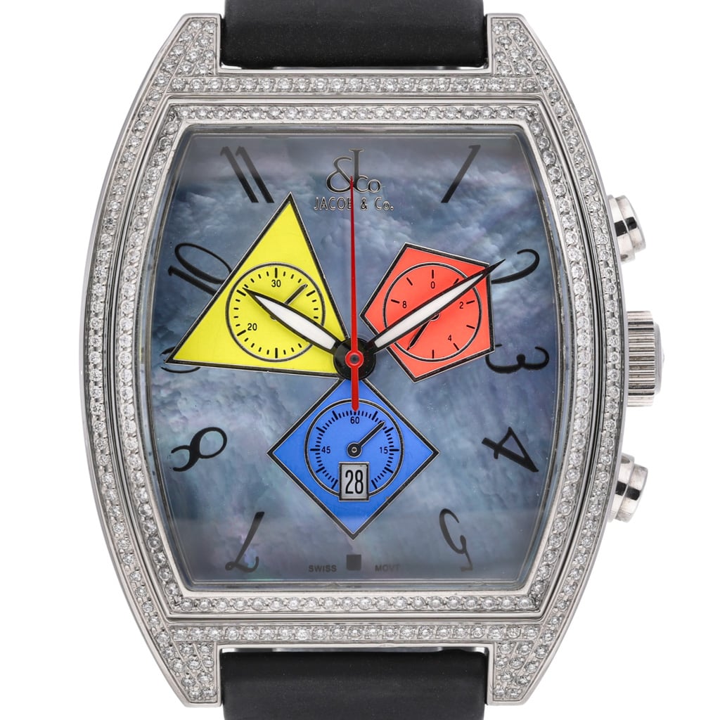 At BQ Watches, our pre-owned Jacob & Co collection showcases some of the brand’s most imaginative, technically ambitious, and visually expressive timepieces sourced from trusted UK channels. Each watch undergoes full authentication, movement inspection, and specialist preparation to highlight the sculptural engineering, multi-dimensional dial work, and avant-garde complications that define Jacob & Co.