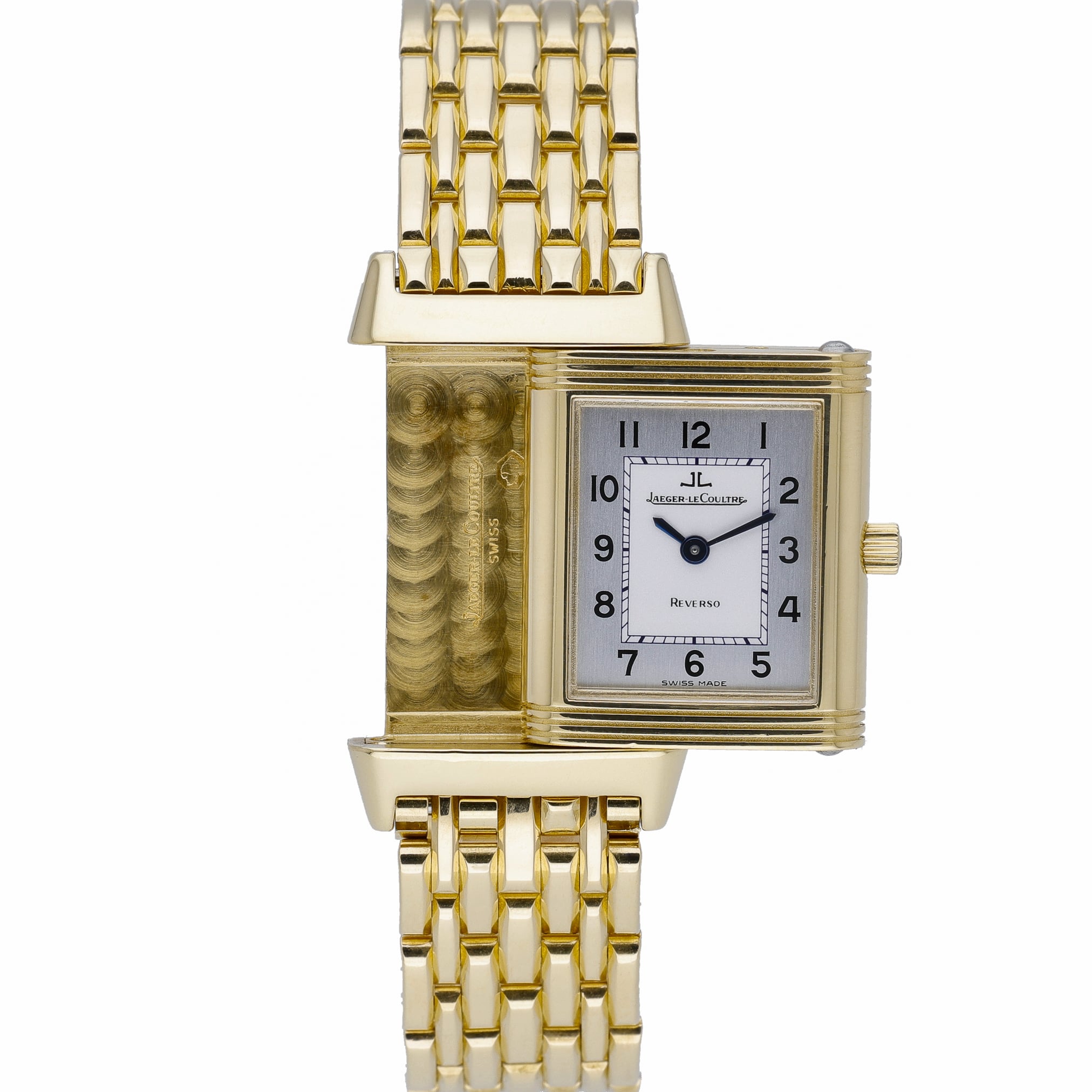 A classic Reverso design featuring Art Deco styling, compact proportions, and a timeless rectangular profile. Its clean dial layouts and rotating case make it an enduring choice for collectors of JLC’s most iconic creation.