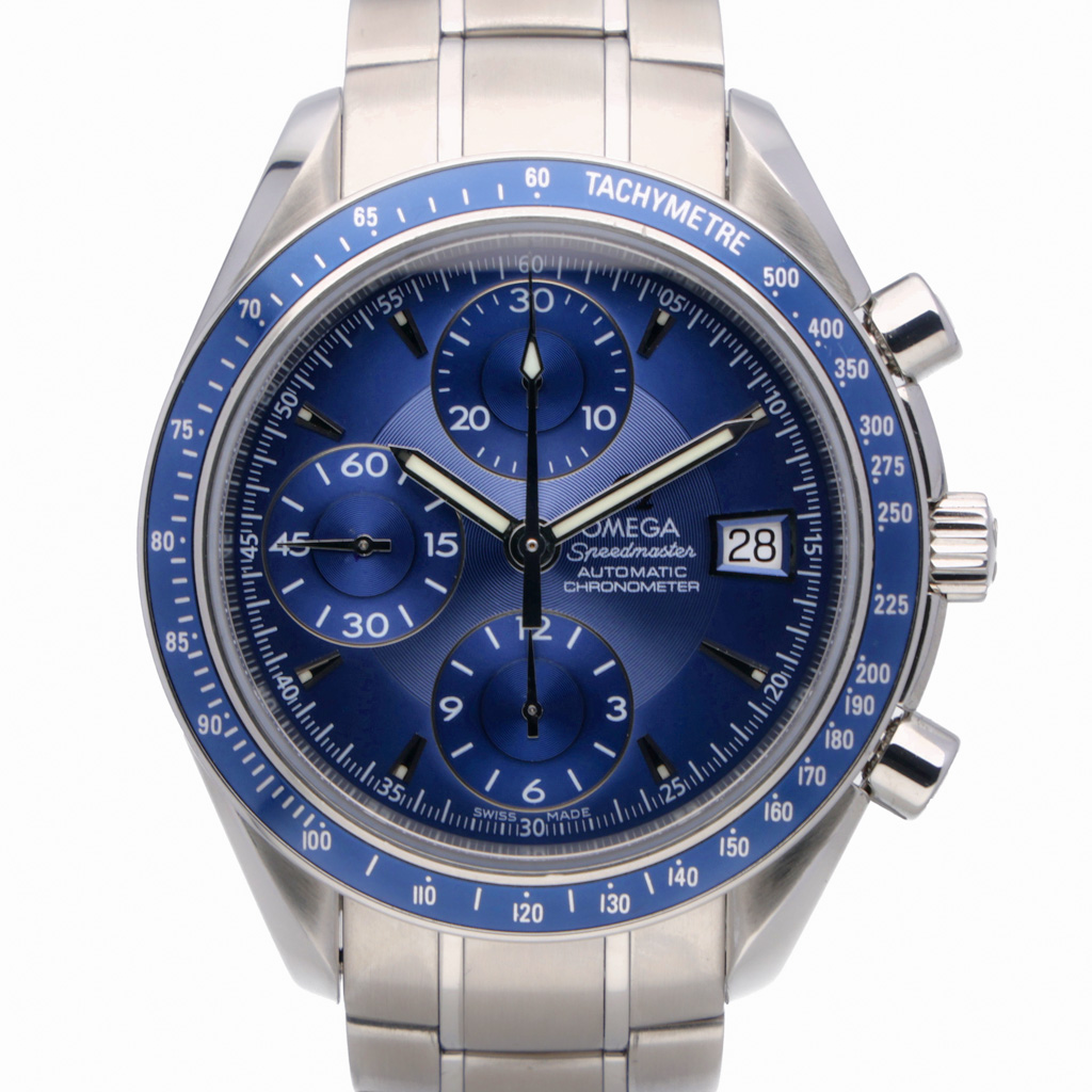 A slightly larger reference with modernised case proportions and strong wrist presence. Its updated design and increased size make it a contemporary option within the Speedmaster Date collection.