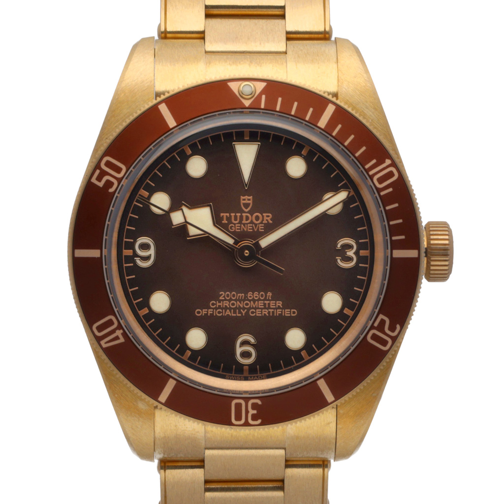 Our collection of pre-owned Tudor Black Bay Bronze watches demonstrates how the Bronze family unites historical elements with modern design. The warm bronze case develops a unique patina over time which creates a personal story on the wrist that evolves with each wearer. The watches combine functional durability with a refined character through their large case dimensions and domed sapphire crystal and bold dial design. The Black Bay Bronze proves its design purpose through both close up examination and everyday use.