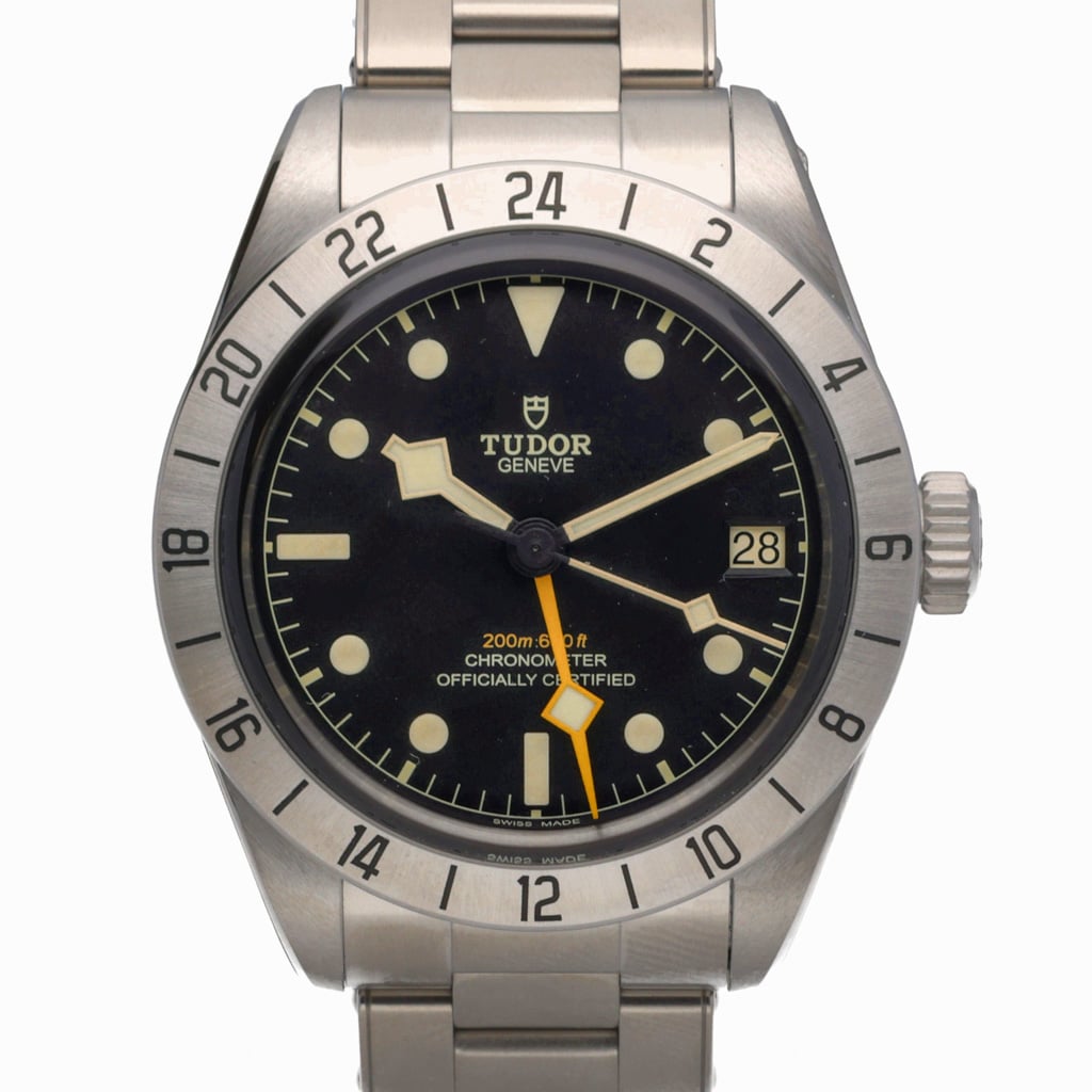 The Tudor Black Bay Pro was introduced as a purpose-built tool watch designed for travel and exploration. Developed by Tudor with a clear emphasis on functionality and durability, the model features a fixed 24-hour bezel paired with a true GMT complication, enabling wearers to track multiple time zones simultaneously with ease.