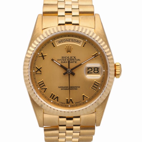 Pre-owned Rolex Day-Date 18238 with 36mm 18ct Yellow Gold case and Champagne dial. Good condition.