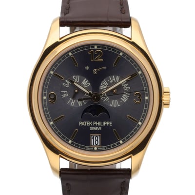 Pre-owned Patek Philippe Annual Calendar 5146J-010 with 39mm 18ct Yellow Gold case and Grey dial. Excellent condition.