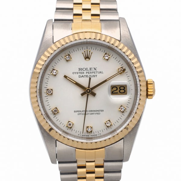 Pre-owned Rolex Datejust 16233 with 36mm Steel & Yellow Gold case and Champagne dial. Good condition.