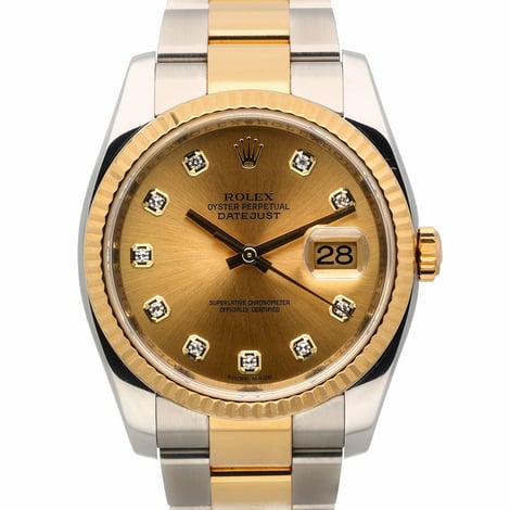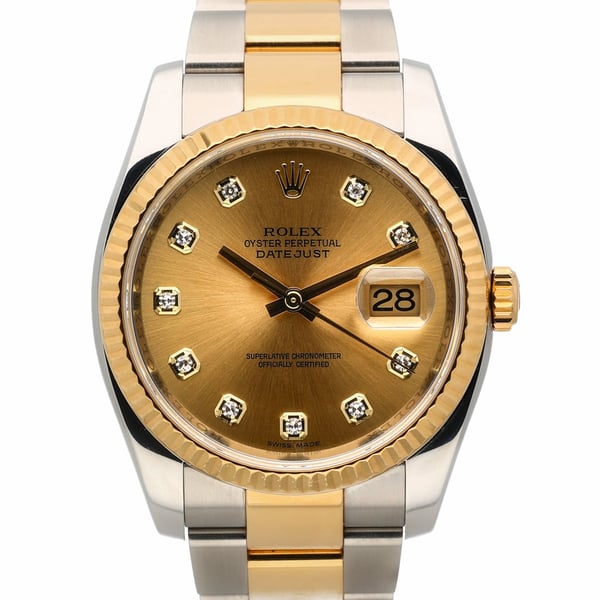 Pre-owned Rolex Datejust 116233 with 36mm Steel & Yellow Gold case and Champagne dial. Excellent condition.