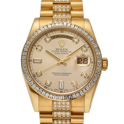 With over 30 years in the luxury watch industry and a 5-star, "Excellent" rated service on TrustPilot, you can be confident that you are buying from a trusted company. We uphold the highest standards of quality and back each of our pre-owned watches with a 24-month warranty. If your Rolex Day-Date 118398 does not meet your expectations for any reason, you have 14 days to return it for a full refund*.
