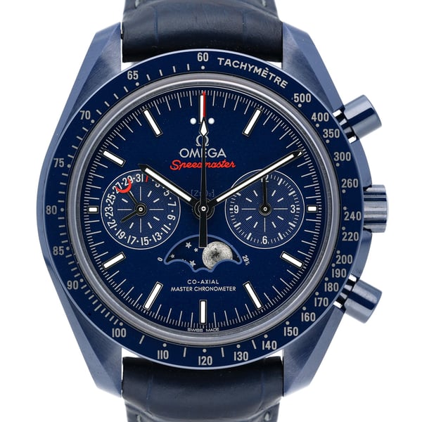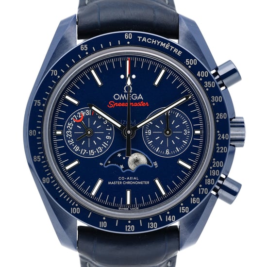 Pre-owned Omega Speedmaster Blue Side Of The Moon 304.93.44.52.03.001 with 44mm Ceramic case and Blue dial. Excellent condition.
