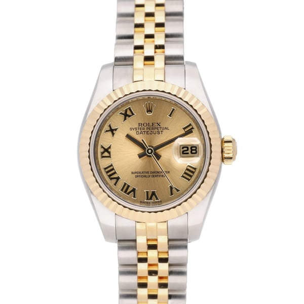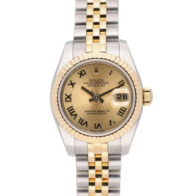 Introducing the iconic Rolex Datejust, a timeless timepiece for the sophisticated woman. Crafted by the renowned brand, Rolex, this watch boasts of excellent craftsmanship and quality. The BQ Ref 47083 model features an automatic movement, ensuring accurate timekeeping. In excellent condition, this watch comes with a 2-year warranty and a warranty card. The champagne dial, adorned with Roman numerals, is housed in a 26mm steel and yellow gold case with a fluted bezel. The oysterclasp and jubilee bracelet, made of steel and yellow gold, add a touch of elegance to this watch. With a water resistance of 100M, this watch is suitable for everyday wear. The Rolex Datejust comes with a box and a green tag, and also a 14-day return policy and next day delivery to ensure a worry-free purchase. The mineral glass on the front of the case protects the dial, making it durable for daily wear.