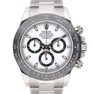 The Rolex Daytona (Model Number 116500LN), crafted in 2023, is an automatic watch in excellent condition. Encased in durable oystersteel, it features a chronograph dial, attractively set in white. The 40mm case is fronted by a sapphire crystal glass, underlining the watch's resilience. The watch is designed for gents, featuring a matching oystersteel bracelet of the Oyster variant, securely fastened with an Oysterlock clasp. It carries a water-resistant attribute up to 100M. This timepiece comes with original papers, box, and a white tag. The benefit of a 5-Year Manufacturer's warranty, following its year of manufacture, along with a 14 Day return policy is provided. With the convenience of Next Day Delivery, this Rolex Daytona makes for a compelling choice.
