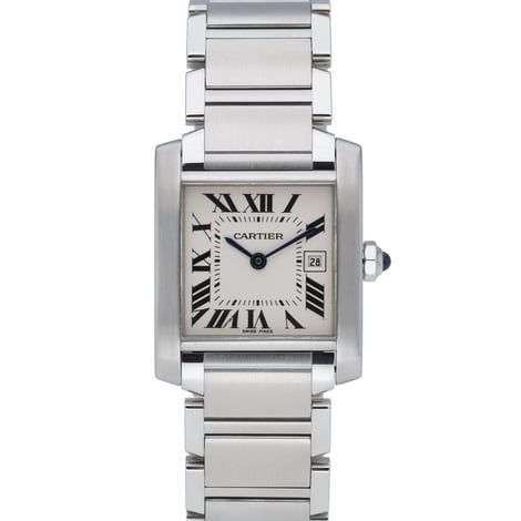 Elegant and enduring, this Cartier Tank Francaise (Model 2465, BQ Ref 50776) blends timeless design with everyday practicality. Crafted in stainless steel, the midsize 25mm case features a smooth bezel and a white dial with classic Roman numerals, protected by scratch-resistant sapphire crystal. A reliable quartz movement ensures precision timekeeping, while the matching steel bracelet with folding clasp offers secure, comfortable wear. Water resistant to 30M, this 2005 example is presented in good condition and is supplied with its original box and papers. Enjoy added confidence with our 2 Year Warranty, Next Day Delivery, and a 14 Day Return Policy.