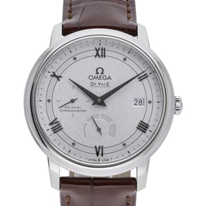 The Omega De Ville Prestige (Model 424.13.40.21.02.004) embodies timeless elegance with a 39.5mm stainless steel case, smooth bezel, and a refined silver dial with Roman numerals beneath scratch‑resistant sapphire crystal. Powered by a reliable automatic movement, this 2020 gents’ piece is presented in excellent condition and paired with a classic black leather strap secured by a pin buckle. Practicality meets style with 3 ATM water resistance, while its slim profile makes it ideal for both formal and everyday wear. Supplied with its box, this watch is available with Next Day Delivery, includes a 2 Year Warranty, and is covered by our 14 Day Return Policy. BQ Ref: 51117.