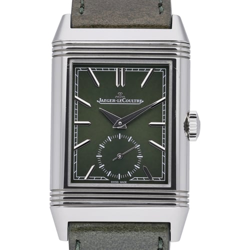 Pre-owned Jaeger-Lecoultre Reverso Q3978430 with 45mm Steel case and Green dial. Excellent condition.