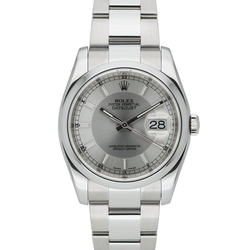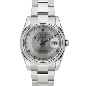 Presenting the Rolex Datejust 36, reference 116200 (2015), crafted in Oystersteel with a refined domed bezel. Its silver baton dial sits beneath scratch-resistant sapphire crystal, powered by Rolex’s reliable automatic movement. The 36mm Oyster case is matched to the classic Oyster bracelet with Oysterclasp, ensuring comfort, security, and everyday versatility with 100M water resistance. This gents example is in excellent condition and is supplied with its original Rolex box and papers. Offered under BQ Ref 51283, it includes a 2 Year Warranty, a 14 Day Return Policy, and Next Day Delivery for a seamless purchase experience. Timeless, versatile, and impeccably engineered, this Datejust embodies the enduring elegance and performance that define Rolex.
