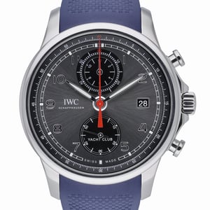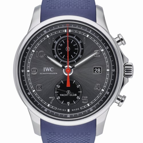 Blending nautical spirit with refined engineering, this IWC Portugieser Yacht Club Chronograph (Ref. IW390503) presents a 43.5mm stainless steel case, smooth bezel, and a sophisticated grey chronograph dial under sapphire crystal. Water resistant to 60 metres and paired with a durable rubber strap and secure folding clasp, it’s built for both deck and city. This 2016 example is in excellent condition and comes complete with its original box and papers. Backed by our 2-year warranty, 14-day return policy, and next-day delivery for swift dispatch. BQ Ref: 51257.