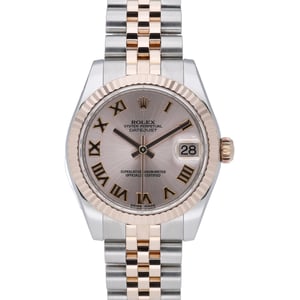 Experience the timeless elegance of the Rolex Datejust 31 (Model 178271), a 2015 midsize classic in steel and rose gold. Presented in excellent condition, this automatic watch features a 31mm case with fluted bezel, a pink Roman numeral dial beneath scratch-resistant sapphire crystal, and a two-tone Jubilee bracelet with a concealed clasp for a seamless fit. Water resistant to 100M, it combines everyday versatility with signature Rolex refinement. Supplied with original box, papers, and white tag, BQ Ref 51315 includes Next Day Delivery, a 14 Day Return Policy, and a 2 Year Warranty for complete peace of mind.