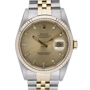 Iconic 1988 Rolex Datejust (ref. 16233, BQ Ref 51340) in steel and yellow gold, featuring a 36mm case with fluted bezel and matching Jubilee bracelet. Presented in excellent condition, it combines an automatic movement with a Champagne dial protected by sapphire crystal and offers 10 ATM water resistance. Secured with a folding clasp for everyday comfort and reliability. This gents model is supplied with its original box and papers. Backed by a 2-year warranty and a 14-day return policy, with next day delivery available.