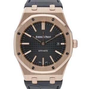 Experience the Audemars Piguet Royal Oak Selfwinding (Ref. 15400OR.OO.1220OR.01), a 41mm gents’ timepiece crafted in 18ct rose gold with a plain bezel and striking black baton dial beneath sapphire crystal. Powered by an automatic movement and dated 2015, this watch is in excellent condition and is fitted to a leather strap with a secure folding clasp. Water resistant to 5 ATM, it blends iconic Royal Oak design with everyday versatility. Supplied with its original box and papers, this piece includes a 2 Year Warranty, a 14 Day Return Policy, and Next Day Delivery. BQ Ref: 51396.