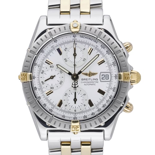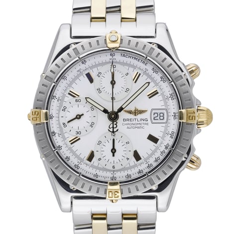 An iconic blend of performance and prestige, this Breitling Chronomat (Model B13352, BQ Ref 51438) features a 39mm steel and yellow gold case with a matching bracelet and secure folding clasp. The crisp white chronograph dial sits beneath sapphire crystal and is framed by a unidirectional rotatable bezel, while the automatic movement ensures dependable precision. Water resistant to 10 ATM, this 2003 example is in excellent condition and is supplied with its original box and papers. Enjoy added confidence with our 2 Year Warranty and 14 Day Return Policy, plus Next Day Delivery for swift dispatch.