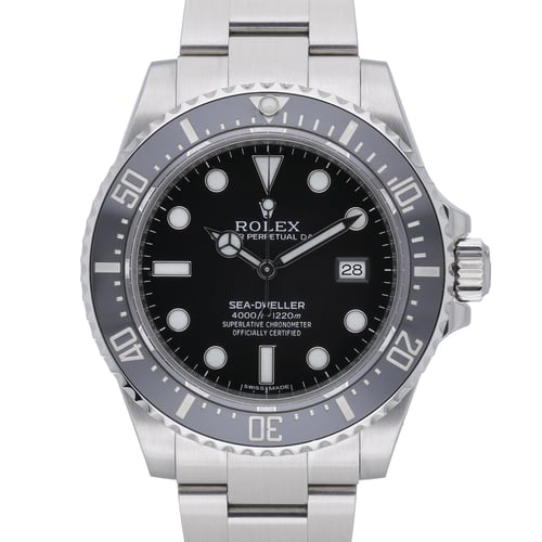 Crafted for professional diving and everyday refinement, this pre-owned Rolex Sea-Dweller 4000 (ref. 116600, 2016) features a 40mm Oystersteel case, black dial, and sapphire crystal. Its automatic movement is paired with a unidirectional rotatable bezel for precise elapsed-time tracking, while the Oyster bracelet and Oysterlock clasp ensure secure wear. Engineered for extreme depths, the Sea-Dweller boasts water resistance to 1,220m/4,000ft. Presented in excellent condition, this example comes complete with original Rolex box, original papers, and the green tag. BQ Ref: 51491. Enjoy added peace of mind with our 2 Year Warranty and 14 Day Return Policy, plus fast, insured Next Day Delivery.