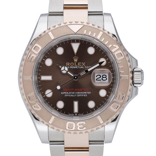 Rolex Yacht-Master 40 (Ref. 126621), 2023, in excellent condition. This 40mm model pairs steel & rose gold with a rich brown dial for a refined nautical aesthetic. Powered by an automatic movement and protected by a sapphire crystal, it features a bidirectional rotatable bezel, 100M water resistance, and the robust Oyster bracelet in steel & rose gold with an Oysterlock clasp. Supplied complete with its Rolex box, original papers, and white tag; partial stickers remain. Covered by a 5-year manufacturer’s warranty from the 2023 date of manufacture. Enjoy peace of mind with our 14 Day Return Policy and the convenience of Next Day Delivery. BQ Ref: 51587.