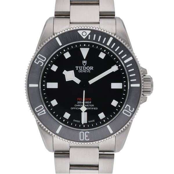 Experience the Tudor Pelagos (ref. 25407N), a 39mm titanium diver in excellent condition, manufactured in 2024. The lightweight titanium case, bezel, and bracelet with folding clasp frame a clean black dial beneath scratch-resistant sapphire crystal. Powered by a precise manual movement and water-resistant to 200 meters, it’s engineered for dependable performance. This example is complete with box, original papers, and white tag, and is covered by a 5-year manufacturer’s warranty from the 2024 manufacture date. BQ Ref 51580. Next Day Delivery available and backed by our 14 Day Return Policy.