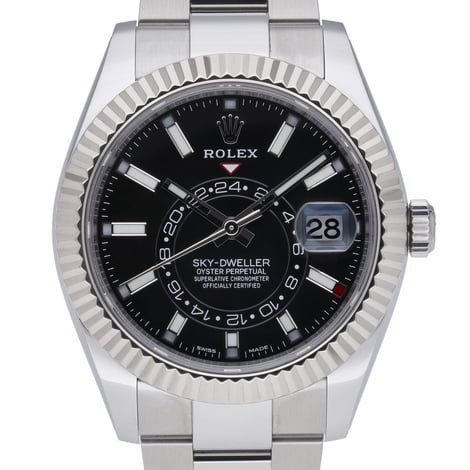 Refinement meets real-world utility in this Rolex Sky-Dweller 326934, a 42mm Steel & White Gold masterpiece with the signature fluted bezel and black baton dial. Powered by an automatic movement, it delivers the Sky-Dweller’s hallmark functionality—an intuitive dual time zone and annual calendar—behind a durable sapphire crystal and 100M water resistance. The watch is presented in excellent condition (2017) and is fitted to an Oystersteel Oyster bracelet with a secure folding clasp. Supplied with original box, original papers, and the white tag, this gents model (BQ Ref 51594) is ready for immediate wear. Enjoy peace of mind with our 2 Year Warranty, plus convenient Next Day Delivery and a 14 Day Return Policy.
