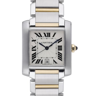 Elegant and instantly recognizable, this Cartier Tank Francaise (Model 2302, BQ Ref 51557) features a 28mm steel and yellow gold case with a matching bracelet and secure folding clasp. The crisp white Roman dial sits beneath scratch-resistant sapphire crystal, powered by a reliable automatic movement. Crafted in 2000 and presented in excellent condition, it retains the collection’s timeless lines and smooth bezel, with 30M water resistance for everyday versatility. Supplied with its box and backed by our 2 Year Warranty, this gents’ reference is an ideal daily companion or a refined addition to any collection. Enjoy Next Day Delivery and shop with confidence with our 14 Day Return Policy.