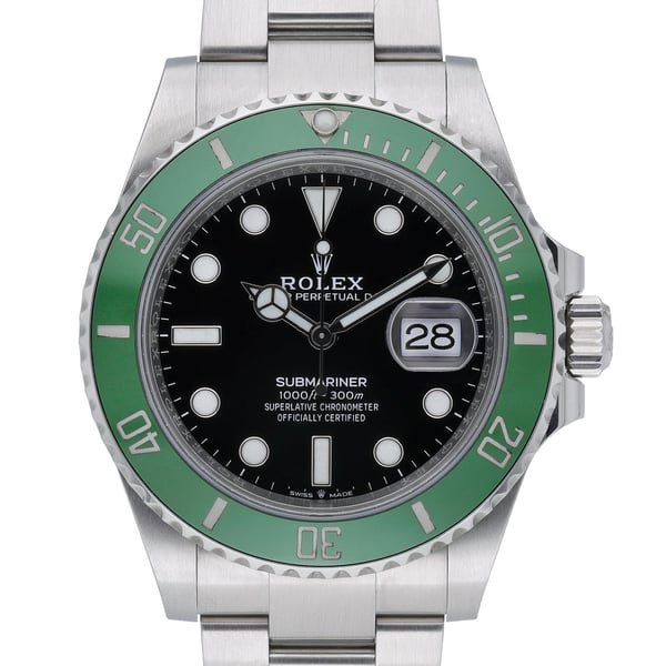 Presenting the Rolex Submariner 126610LV “Starbucks,” a 2022 example in excellent condition. Crafted in corrosion-resistant Oystersteel with a 41mm case, black dial under a scratch-resistant sapphire crystal, and a green unidirectional rotatable bezel, it’s powered by a precise automatic movement and water resistant to 300m. The robust Oyster bracelet with Oysterlock clasp ensures secure, comfortable wear. Supplied as a complete set with Rolex box, original papers, and original white tag, BQ Ref 51634. Covered by the 5-year manufacturer’s warranty from the date of manufacture. Additional benefits include next day delivery and a 14-day return policy.