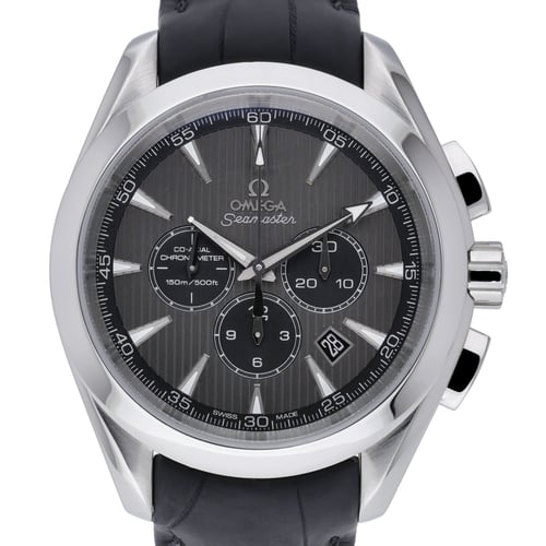 Discover the Omega Seamaster Aqua Terra (BQ Ref 51601), a 44mm gents chronograph that fuses sporty capability with refined style. Crafted in stainless steel, it features a plain bezel and a grey chronograph dial protected by scratch‑resistant sapphire crystal. The reliable automatic movement delivers precision performance, while 150M water resistance ensures confidence from desk to deck. A secure folding clasp provides comfortable, everyday wear. Presented in excellent condition and supplied with its box, this Aqua Terra is a versatile choice for any collection. Enjoy Next Day Delivery and shop with confidence with our 14 Day Return Policy.