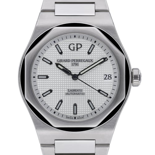Experience the enduring design of the Girard-Perregaux Laureato, BQ Ref 51606 (Model 81000-11-131-11A). This 42mm gents’ timepiece pairs a stainless-steel case and bracelet with the Laureato’s signature octagonal bezel and a refined silver dial under scratch‑resistant sapphire crystal. Powered by a precise automatic movement, it delivers everyday versatility with 100M water resistance and a secure folding clasp. Manufactured in 2019 and presented in excellent condition, it is supplied with its original box and papers for complete peace of mind. Enjoy a 2 Year Warranty, Next Day Delivery, and our 14 Day Return Policy. A modern classic from Girard-Perregaux, ready to wear and collect.