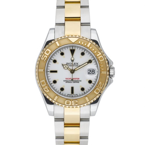 Discover the Rolex Yacht-Master ref. 68623 (BQ Ref 51655), a distinguished 35mm midsize crafted in steel and yellow gold and presented in excellent condition. Powered by an automatic movement, this 1997 model features a clean white dial beneath sapphire crystal, a bidirectional rotatable bezel, and the iconic two-tone Oyster bracelet with folding clasp for secure, everyday comfort. Water resistant to 100m, it balances nautical heritage with refined versatility. This example is complete with original box, papers, and green tag, and is backed by our 2 Year Warranty for added peace of mind. Enjoy the assurance of a 14 Day Return Policy and the convenience of Next Day Delivery.