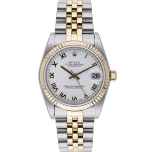 Timeless and refined, this ladies’ Rolex Datejust (Model 78273, BQ Ref 51659) pairs enduring design with everyday versatility. The 31mm case in steel and yellow gold is complemented by a fluted bezel and the iconic Jubilee bracelet with folding clasp. A crisp white Roman dial sits beneath scratch-resistant sapphire crystal, powered by a reliable automatic movement and water resistant to 100M. Presented in excellent condition, this 2000 example comes complete with original Rolex box and papers, offering added confidence for collectors and first-time buyers alike. Backed by our 2 Year Warranty, with Next Day Delivery and a 14 Day Return Policy, this Datejust embodies the perfect balance of luxury and practicality—an elegant statement for any occasion.