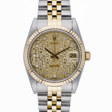Timeless and versatile, this Rolex Datejust (ref. 68273, BQ Ref 51700) features a refined 31mm midsize case in steel and yellow gold with a classic fluted bezel. Its Jubilee-pattern dial is elegantly diamond-set and protected by scratch-resistant sapphire crystal, while the reliable automatic movement delivers hallmark Rolex precision. The two-tone Jubilee bracelet with folding clasp offers enduring comfort and sophistication, complemented by 100M water resistance for confident daily wear. Produced in 1993 and presented in excellent condition, this Datejust is supplied with its box and accompanied by a 2 Year Warranty. Enjoy convenient Next Day Delivery and shop with confidence under our 14 Day Return Policy.