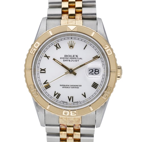 Rolex Datejust Turn-O-Graph ref. 16263, 1994, in excellent condition. This 36mm gents model combines steel and yellow gold with a classic Jubilee bracelet and folding clasp. Its signature rotating Turn‑O‑Graph bezel adds sporty utility to the timeless Datejust profile, while a crisp white Roman dial sits beneath a sapphire crystal. Powered by a dependable automatic movement and water resistant to 100M, it’s a refined daily companion. Supplied with original Rolex box and papers, plus a 2 Year Warranty. Next Day Delivery available and covered by our 14 Day Return Policy. BQ Ref: 51670.