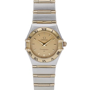 Elegant and iconic, this ladies’ Omega Constellation (BQ Ref 51724) pairs a 22mm steel and yellow gold case with a matching integrated bracelet for timeless wearability. The champagne dial with baton hour markers sits beneath a scratch‑resistant sapphire crystal, while the precise quartz movement delivers reliable, low‑maintenance performance. Presented in excellent condition, this classic Constellation captures the collection’s signature blend of refined luxury and everyday practicality. Enjoy Next Day Delivery and the reassurance of our 14 Day Return Policy.