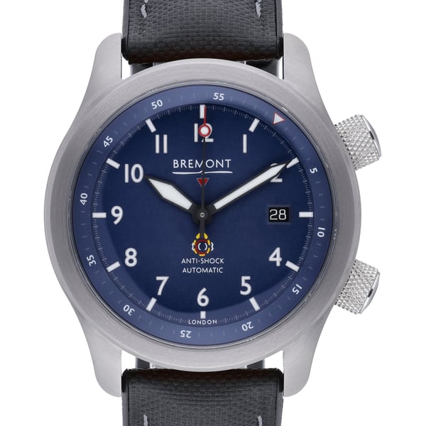 Presenting the Bremont MBII (Model MBII, BQ Ref 51704), a 43mm gents automatic from 2020 in excellent condition. The robust stainless steel case with matching steel bezel frames a striking blue Arabic dial, protected by scratch-resistant sapphire crystal. Water resistant to 100M, it’s paired with a leather strap and secure folding clasp for everyday comfort. This example is supplied with its original box and papers and is covered by a 2 Year Warranty for peace of mind. Enjoy Next Day Delivery and a 14 Day Return Policy.