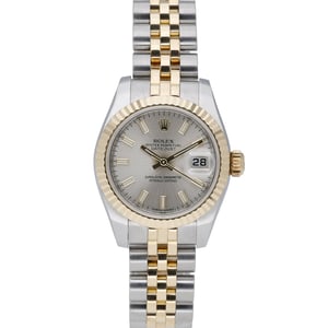 Discover the timeless elegance of the Rolex Datejust (Ref. 179173), a ladies’ 26mm model crafted in steel and yellow gold. Produced in 2014 and presented in excellent condition, it features a classic fluted bezel, silver baton dial beneath scratch‑resistant sapphire crystal, and the iconic Jubilee bracelet secured by an Oysterclasp. Powered by a reliable automatic movement and water resistant to 100M, this Datejust is refined yet practical for everyday wear. Supplied with original Rolex box, original papers, and green tag, it is backed by a 2 Year Warranty for added confidence. BQ Ref: 51738. Enjoy Next Day Delivery and our 14 Day Return Policy.