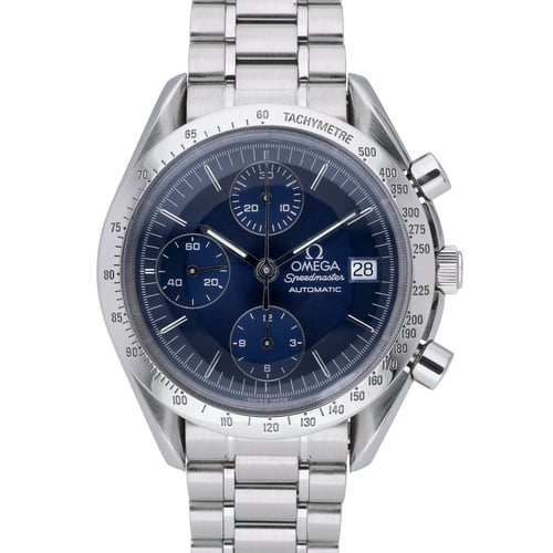 Discover the Omega Speedmaster Date, ref. 3511.80—an elegant 39mm gents chronograph that balances heritage and everyday wearability. Presented in excellent condition and dated to 1999, it features a striking blue dial with tri‑compax chronograph layout, framed by a tachymetric scale bezel. The automatic movement offers reliable performance, safeguarded by a scratch‑resistant sapphire crystal and a water‑resistant case. A robust stainless‑steel bracelet with a secure folding clasp completes the timeless look. Supplied with its box, this watch comes with a 2 Year Warranty, plus a 14 Day Return Policy and Next Day Delivery for a seamless purchase experience. BQ Ref: 51773.