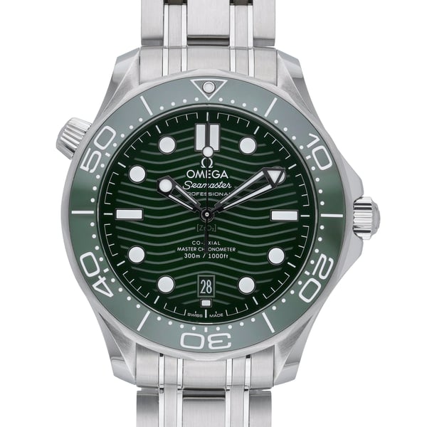Discover the Omega Seamaster Diver 300M (Model 210.30.42.20.10.001, BQ Ref 51778), a 2022 example in excellent condition. Crafted in stainless steel with a 42mm case, it features a striking green dial protected by sapphire crystal and a bidirectional rotatable bezel. Powered by a reliable automatic movement, this Seamaster offers 30 ATM water resistance and is fitted with a sturdy steel bracelet and folding clasp for secure comfort. Supplied with its original box and papers, it is backed by a 2 Year Warranty for added peace of mind. Enjoy convenient Next Day Delivery and shop confidently with our 14 Day Return Policy.