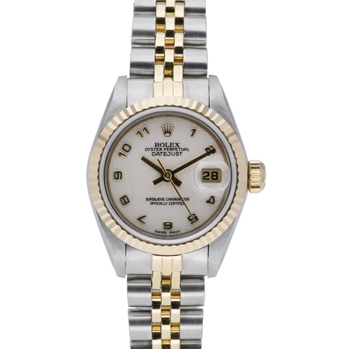 Timeless and versatile, this ladies’ Rolex Datejust (ref. 69173) features a 26mm steel and yellow gold case with a signature fluted bezel and two-tone Jubilee bracelet. Its cream Arabic dial offers elegant legibility, powered by a reliable automatic movement protected by a sapphire crystal. Presented in good condition, this 1990 example includes its Rolex box and original green tag, and secures with a folding clasp. With 10 ATM water resistance, it’s perfectly suited to everyday sophistication. Supplied with a 2 Year Warranty, a 14 Day Return Policy, and Next Day Delivery. BQ Ref: 51758.