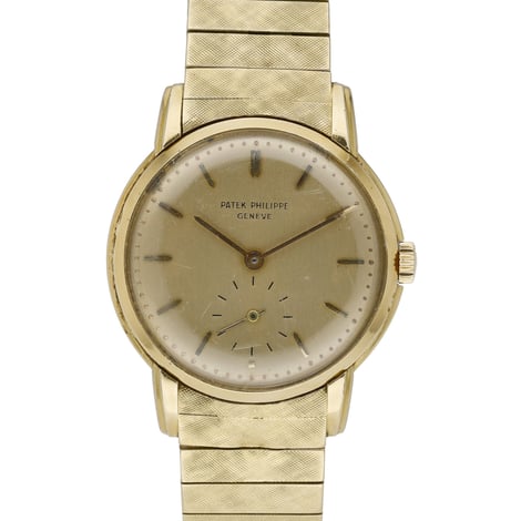 Embodying mid-century elegance, this Patek Philippe Vintage (Model 2484, BQ Ref 51824) is a ladies’ 32mm timepiece from 1950, crafted in 18ct yellow gold with a matching bracelet and secure folding clasp. Presented in vintage untouched condition, it features a champagne baton dial beneath a period-correct plastic crystal and a plain bezel, powered by a refined manual-wind movement. Supplied with box, it is covered by a 2 Year Warranty, includes a 14 Day Return Policy, and is available with Next Day Delivery. A timeless addition to any collection, balancing minimalist aesthetics with Patek Philippe’s renowned craftsmanship.