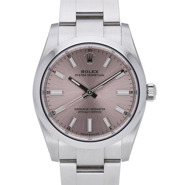 Presenting the Rolex Oyster Perpetual 34 (Ref. 124200), a 2022 midsize timepiece in excellent condition. Crafted from resilient Oystersteel, it features a 34mm case with a domed bezel and a refined pink baton dial under scratch‑resistant sapphire crystal. The automatic movement is paired with the iconic Oyster bracelet and secure Oysterclasp, delivering everyday reliability with 100m water resistance. Supplied with original box, papers, and white tag (BQ Ref 51781). Includes a 5-year manufacturer’s warranty from the 2022 date of manufacture, plus our 14-day return policy and next-day delivery for immediate peace of mind.