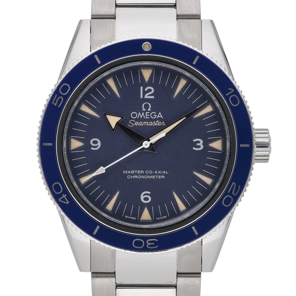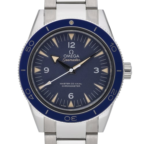 Experience iconic dive-watch heritage with this Omega Seamaster 300, BQ Ref 51820. Crafted in 2017 and presented in excellent condition, it features a 41mm stainless-steel case and bracelet with a secure folding clasp. The blue baton dial sits beneath scratch‑resistant sapphire crystal, framed by a unidirectional rotating bezel for precise timing. Powered by an automatic movement and water resistant to 300M, it’s built for performance above and below the surface. This gents’ model is supplied with its original box and papers and includes a 2 Year Warranty for added peace of mind. Enjoy Next Day Delivery and a 14 Day Return Policy. A refined and reliable classic, equally suited to daily wear or adventure.