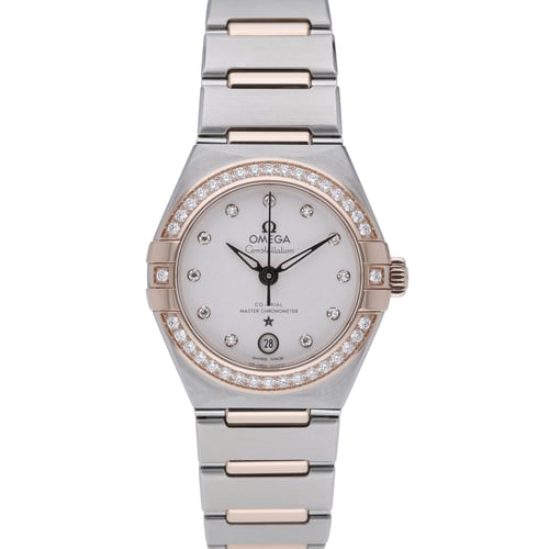 Experience timeless elegance with the Omega Constellation, BQ Ref 51816 (Model 13125292052001). The 29mm steel and rose gold case pairs with a matching bracelet, framing a white, diamond-set dial beneath sapphire crystal, while a diamond bezel adds sophisticated brilliance. Powered by an automatic movement and secured with a folding clasp, this 2025 piece is offered in excellent condition. Supplied with original box, papers, and the original white tag, and backed by a 5-year manufacturer’s warranty from its 2025 date of manufacture. Enjoy next day delivery and a 14-day return policy.