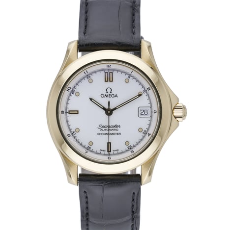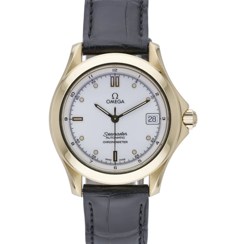 Elegantly refined, this 36mm Omega Seamaster (Model 1681501, BQ Ref 51815) pairs timeless design with dependable performance. Crafted in 18ct yellow gold and dating from 1990, it features a clean white baton dial protected by sapphire crystal and is powered by a reliable automatic movement. The plain bezel and leather strap with pin buckle underscore its classic, understated style, while 30M water resistance adds everyday practicality. In excellent condition, this gents Seamaster is supplied with a box and includes a 2 Year Warranty for added peace of mind. Enjoy convenient Next Day Delivery and a 14 Day Return Policy.